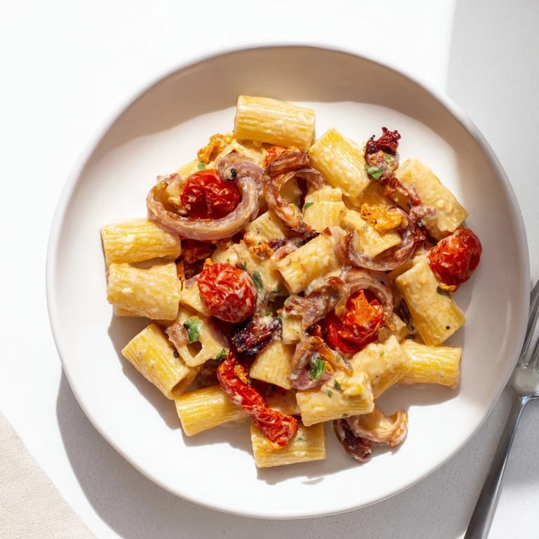 Save to Pinterest A creamy, tangy baked feta pasta elevated with sweet caramelised onions and rich sun-dried tomatoes. This modern twist delivers deep flavor and irresistible texture, perfect for an easy weeknight meal.