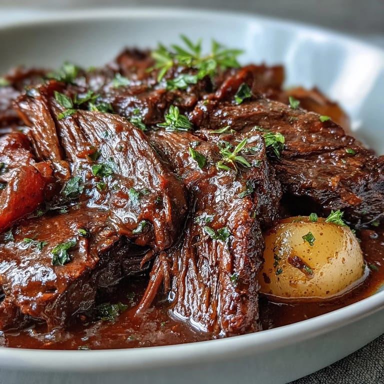 Save to Pinterest The first time I made pot roast, I was hosting a Sunday dinner for friends and had no idea what I was doing. I tossed everything in the oven at noon and prayed, checking the pot every twenty minutes like a nervous parent. By the time everyone arrived, the house smelled like heaven, and that roast was so tender it practically fell apart when I tried to carve it. Now it's my go-to for lazy weekends when I want something that tastes like I spent all day cooking but actually lets me binge-watch shows while it braises.