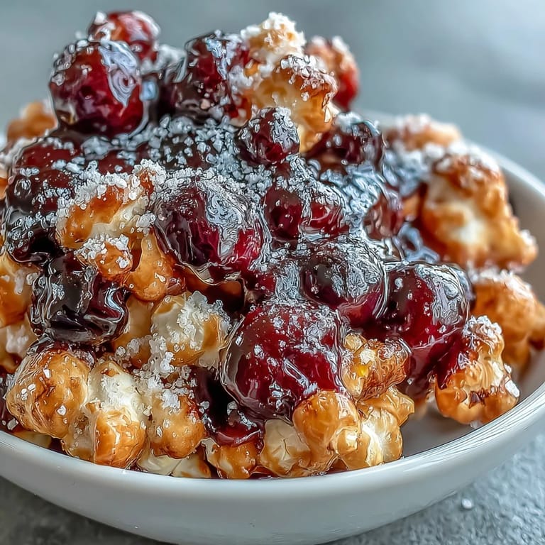 Save to Pinterest Experience a delightful fusion of savory-sweet kettle corn, infused with tangy black currant and creamy cheesecake flavors for a gourmet popcorn treat. This vibrant snack is perfect for those who crave a balance of fruity sweetness and a sophisticated, creamy finish in every bite.