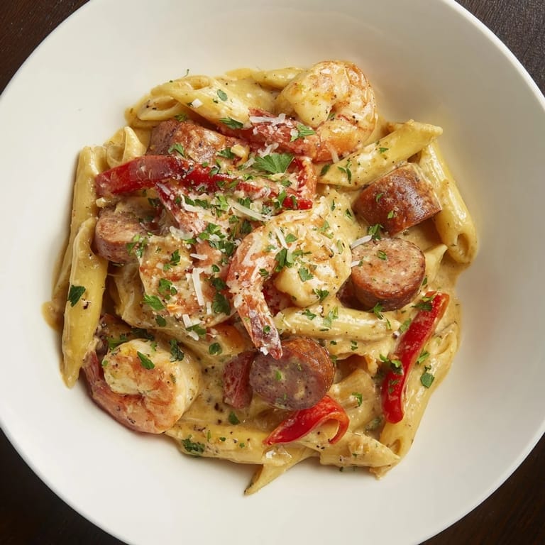 Save to Pinterest A creamy, spicy one-pan pasta featuring smoky sausage, succulent shrimp, and a rich Cajun Alfredo sauce is perfect for weeknight comfort. This dish brings the bold flavors of Cajun cuisine together in a hearty skillet everyone will love.