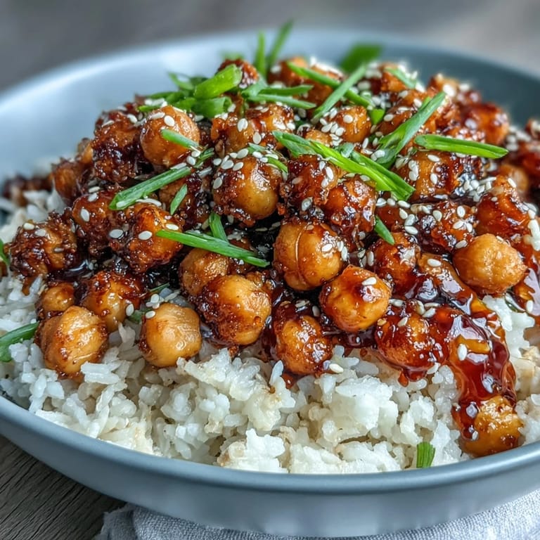 Save to Pinterest There's something deeply satisfying about the moment chickpeas go from soft and humble to shattering between your teeth with a golden crunch. I stumbled onto this recipe on an ordinary Tuesday when I was tired of the same vegetarian rotation and wanted something that felt exciting without demanding hours in the kitchen. The combination of crispy, spiced chickpeas meeting bright chili-garlic heat over fragrant jasmine rice struck me as the kind of dish that doesn't need meat to feel substantial or interesting.