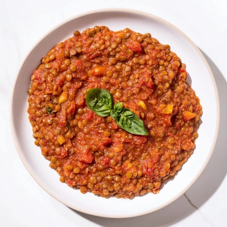 Save to Pinterest A hearty vegan twist on classic Bolognese featuring rich tomatoes, earthy lentils, and fresh basil in a creamy satisfying sauce—perfect for pairing with your favorite pasta.