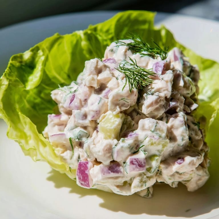 Save to Pinterest My daughter, who normally turns her nose up at anything with visible onions, asked if she could have this in her lunchbox the next day. Something about the way the cold, tangy filling sits in that crisp lettuce cup transforms it from 'salad' into something completely different. It's become her request for pool days and picnic lunches.