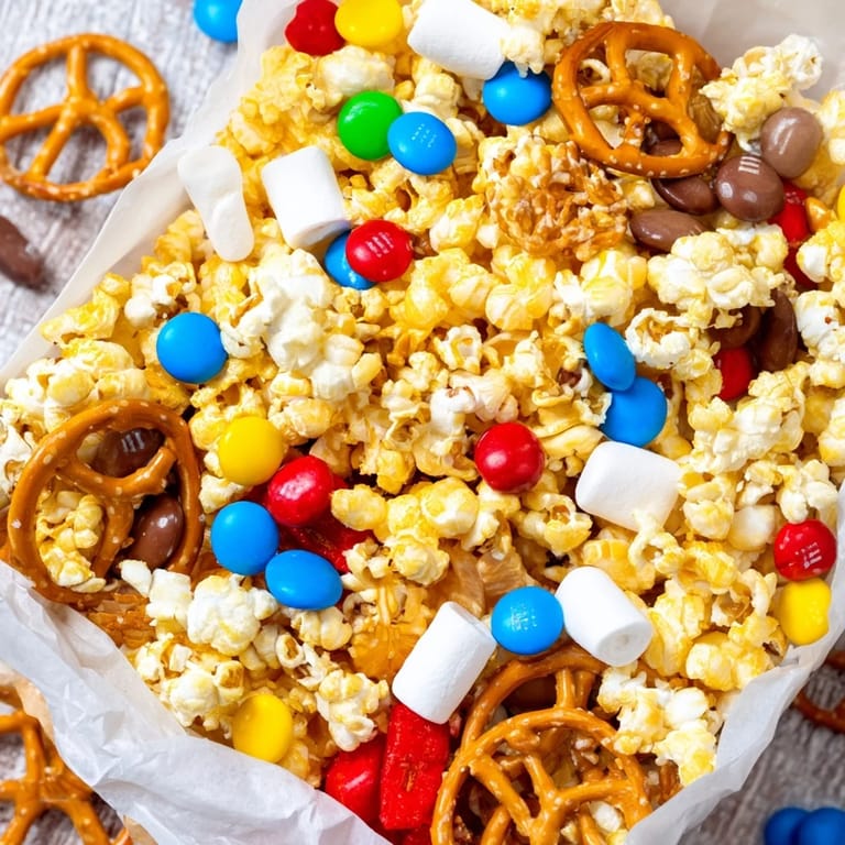 Toss popcorn with a dash of chili powder or smoked paprika before adding treats to add a subtle kick.
