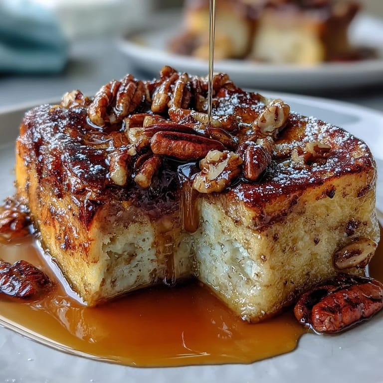 The secret to this pancake casserole's irresistible appeal lies in its clever baking method. By gently swirling pure maple syrup through the batter before it hits the oven, you create pockets of caramelized sweetness that meld beautifully with the soft, cake-like crumb. The optional topping of chopped pecans or walnuts adds a delightful crunch, while a final dusting of powdered sugar gives each slice that bakery-worthy finish. Whether you're feeding a crowd or simply treating yourself to a special breakfast, this vegetarian-friendly dish delivers comfort and joy in every golden bite.