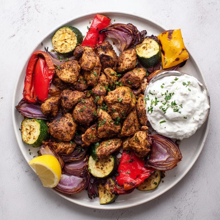 - Chicken & Marinade: 1.5 lbs (700 g) boneless skinless chicken thighs cut into large chunks 3 tbsp olive oil 2 tbsp fresh lemon juice 4 garlic cloves minced 2 tsp ground cumin 2 tsp ground paprika 1.5 tsp ground coriander 1 tsp ground turmeric 1 tsp ground cinnamon 1 tsp ground black pepper 1 tsp salt 0.5 tsp cayenne pepper (optional for heat)