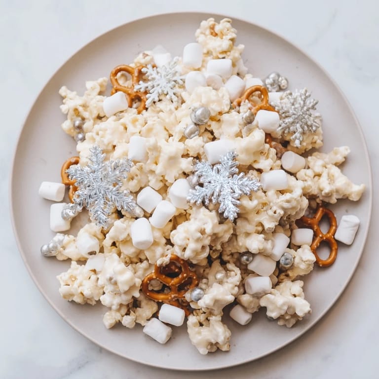 Save to Pinterest A crunchy sweet-and-salty snack mix inspired by après-ski gatherings featuring pretzels popcorn white chocolate and wintry sprinkles.