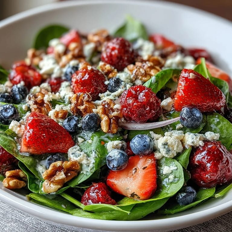 Save to Pinterest I threw this salad together on a Sunday afternoon when I had guests coming over in an hour and nothing planned. The berries were sitting in the fridge, the spinach was fresh from the market, and I remembered a jar of goat cheese tucked in the back. What started as a panic move turned into the most complimented dish of the day. Sometimes the best recipes happen when you're not overthinking it.