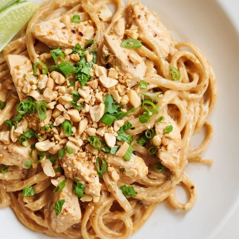 Save to Pinterest There's something about the smell of garlic hitting hot oil that makes you stop whatever you're doing. I was rushing through dinner one weeknight, craving something bright and comforting, when I decided to throw together a Thai-inspired pasta instead of ordering takeout. That first tangle of noodles coated in creamy peanut sauce, the lime hitting my tongue, the cilantro snapping between my teeth—it was the kind of happy accident that becomes a regular thing. Now this dish is my go-to when I want something that tastes like it took hours but actually comes together in less than 40 minutes.