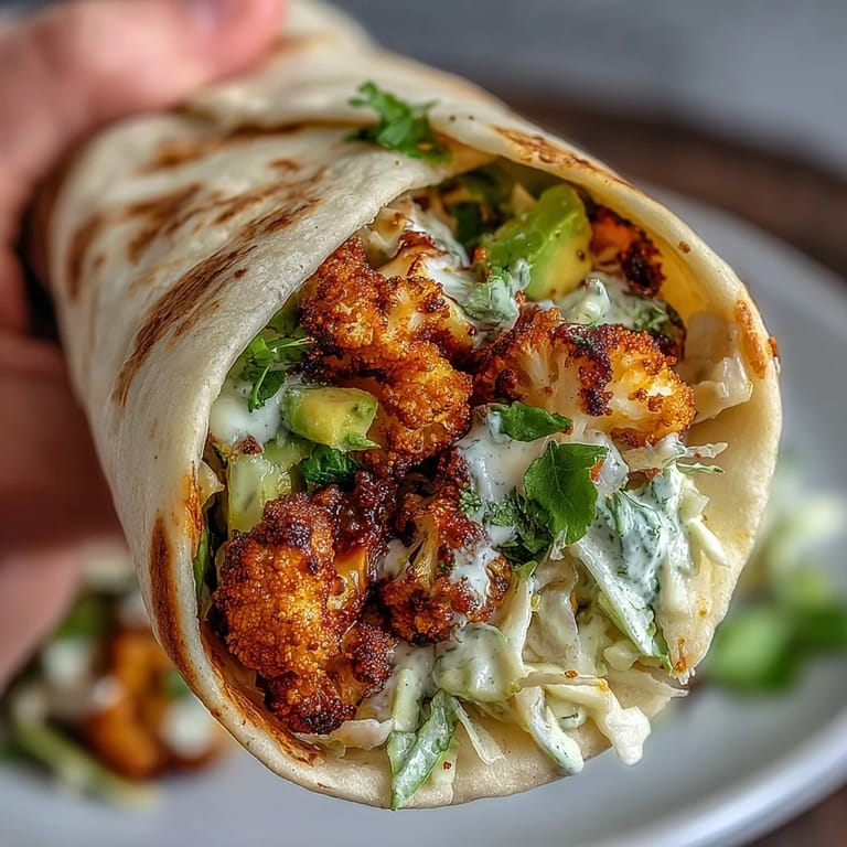 Save to Pinterest My friend Maya texted me at 4 PM asking if I could whip up something vegan for dinner, and honestly, I almost panicked. Then I remembered the first time I'd roasted cauliflower with buffalo sauce at a potluck—how everyone kept reaching for it, vegans and omnivores alike—and suddenly this wrap came together in my head. The beauty of this dish is that it doesn't feel like a compromise or a substitute for anything; it stands completely on its own with crispy, spicy cauliflower and this ridiculously creamy ranch slaw that tastes like comfort food.