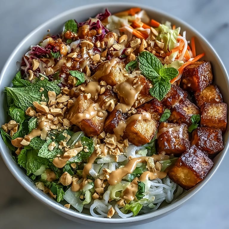 Save to Pinterest There's something about deconstructing a spring roll into a bowl that made me fall in love with weeknight cooking all over again. I was standing in my kitchen on a Tuesday, staring at a bunch of herbs that were starting to wilt, when I realized I didn't need to fuss with rolling paper or steaming—just layer everything fresh and raw with a silky peanut sauce poured on top. My partner walked in mid-chop and said it smelled like a Vietnamese restaurant, and honestly, that's when I knew this bowl had become something I'd make again and again.
