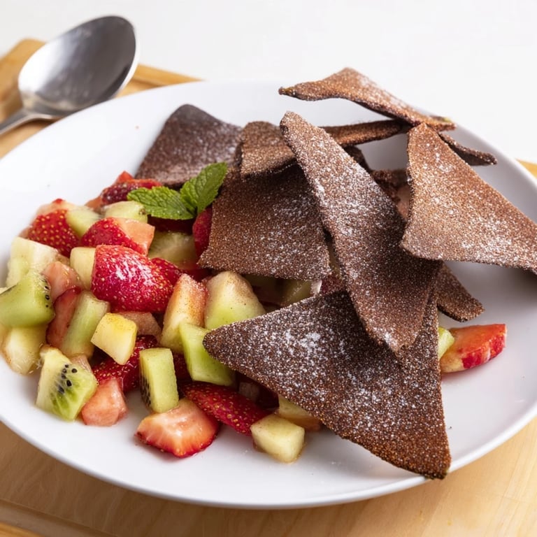 Turn a classic appetizer into a sweet surprise with crispy chocolate tortilla chips and vibrant fruit salsa. Golden-baked chips are dusted in cocoa, cinnamon, and sugar, then paired with a medley of strawberries, kiwi, pineapple, mango, and apple—tossed in lime, honey, and fresh mint. Ready in just 30 minutes, this clever treat finishes any gathering with a burst of color and flavor. Feel free to swap fruits for the season and serve with a side of whipped cream or yogurt for extra indulgence. Simple, fresh, and ideal for sharing at the table.