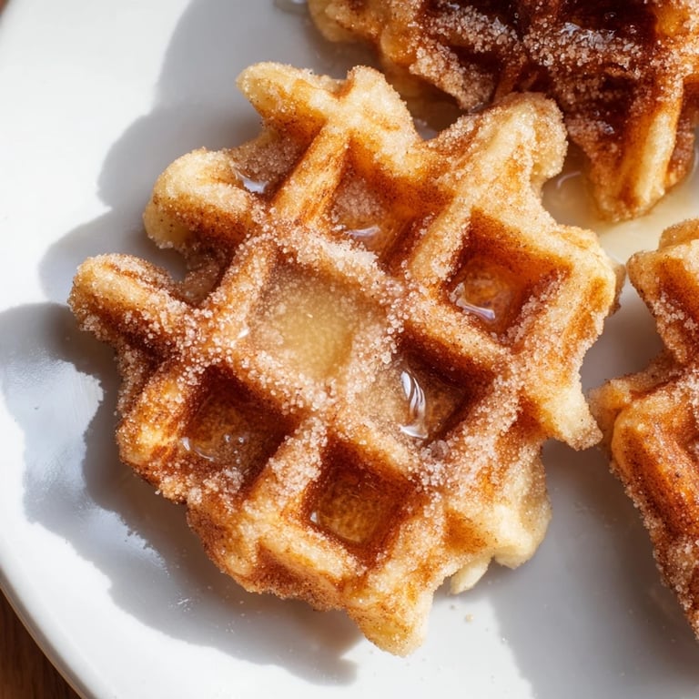 Save to Pinterest Crispy, fluffy waffles coated in sweet cinnamon sugar, delivering all the flavor of churros in a fraction of the time.