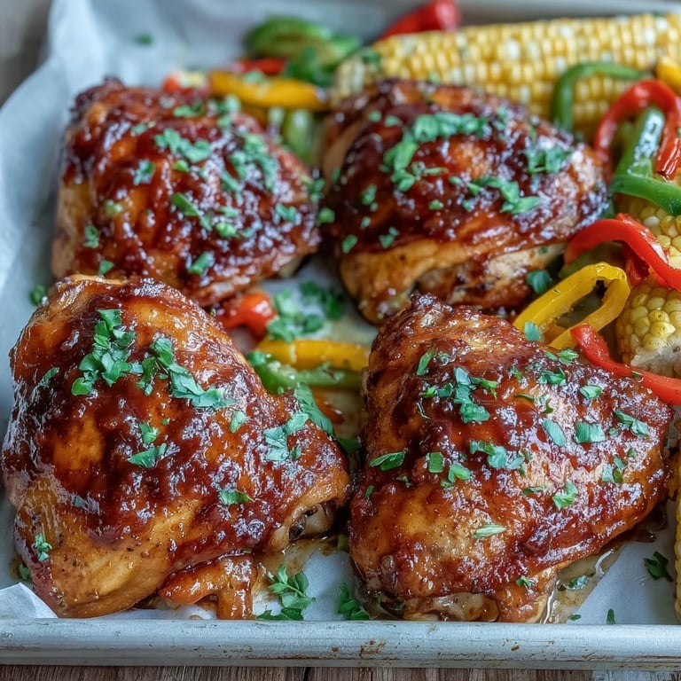 Save to Pinterest My neighbor showed up one summer evening with a sheet pan loaded with chicken and vegetables, steam still rising off it, and I realized I'd been overthinking weeknight dinners for years. She set it down on our picnic table and said, "Everything cooks at once, nothing sticks, and your kitchen stays cool." That moment changed how I thought about feeding people on hot days. Now this is my go-to when I want maximum flavor with minimum fuss, especially when the grill feels like overkill but the oven still works just fine.