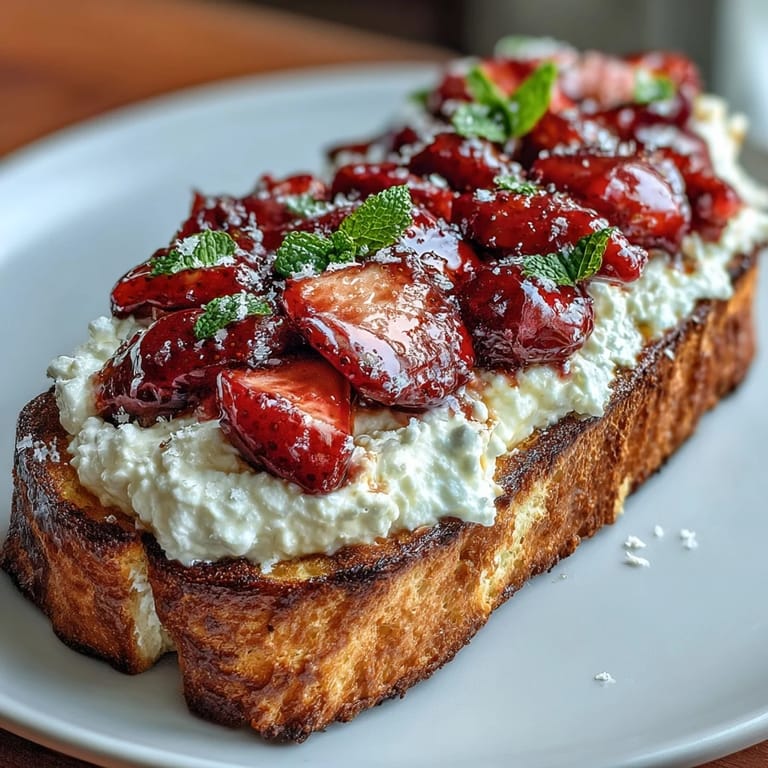 Save to Pinterest My friend texted me on Valentine's morning asking what she should make for brunch, and I found myself describing this toast without hesitation—the kind of dish that sounds elegant but comes together in your kitchen without any fuss. There's something about the combination of creamy ricotta and bright strawberries that feels celebratory without trying too hard. I'd made it countless times by then, always with the same result: people lighting up at the table, surprised that something this good took barely fifteen minutes. The honey catches the light when you drizzle it, and suddenly you've created something that looks like it belonged in a magazine.